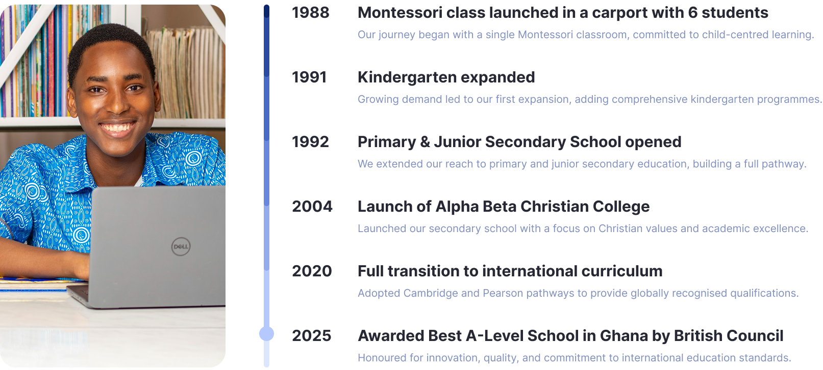 What began as a small Montessori class has grown into one of Ghana's most respected international Christian education centres.
